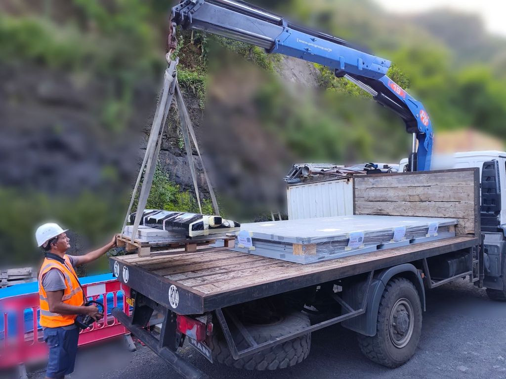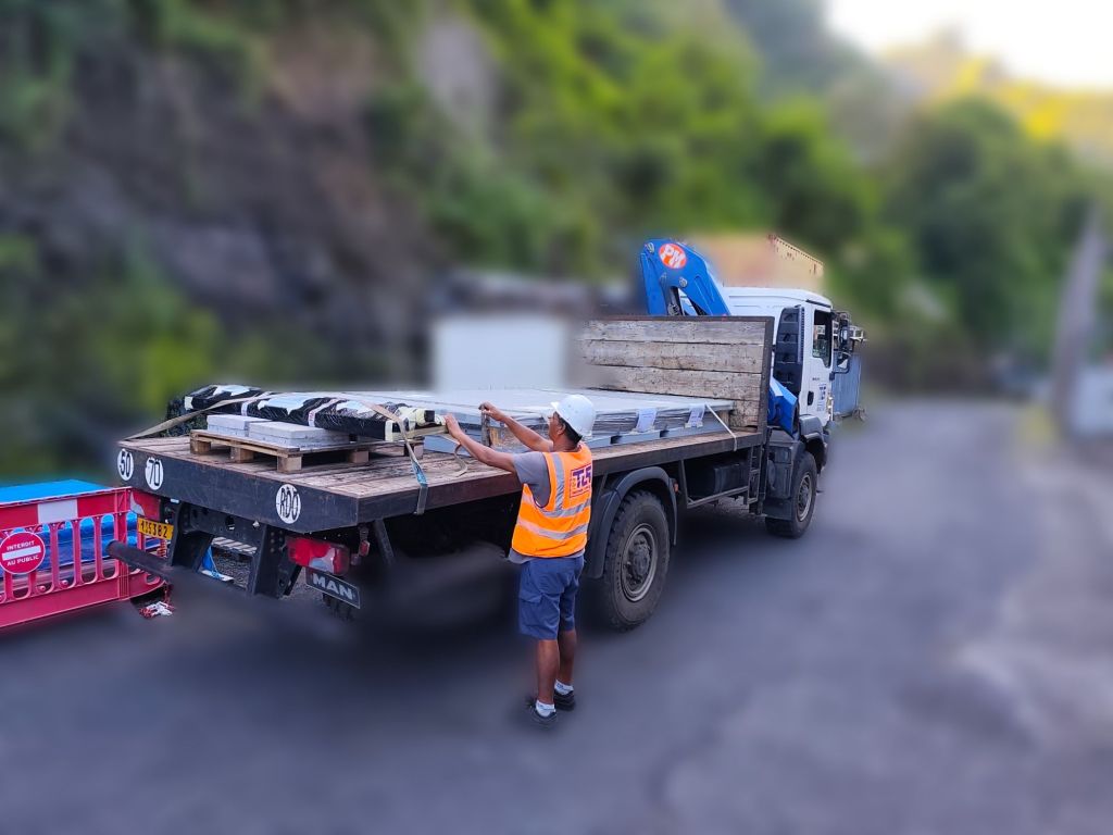 ✓ votre lieu de résidence sur Tahiti ou Moorea (livraison par camion plateau avec grue)